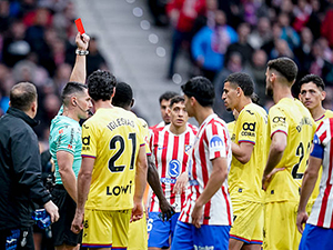 Hậu vệ Abdel Abqar đã bị phạt thẻ đỏ trực tiếp vì sờ vào bộ phận nhạy cảm của tiền đạo Sorloth trong trận derby Madrid giữa Atletico Madrid và Getafe. |