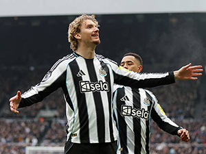 Nick Woltemade đã ‘ngồi chung mâm’ với 3 huyền thoại Premier League là Robbie Fowler, Paul Scholes và Sergio Agüero khi tỏa sáng trong hiệp 1 trận đấu giữa Newcastle và Chelsea. |