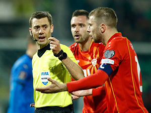Được giao nhiệm vụ cầm còi, trọng tài người Pháp đã gợi lại kí ức buồn cách đây 4 năm cho đội tuyển Italia. |