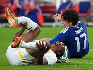 Tiền vệ Tanaka Ao của Nhật Bản đã sút gãy chân cầu thủ Ghana trong trận giao hữu vào đêm qua. |