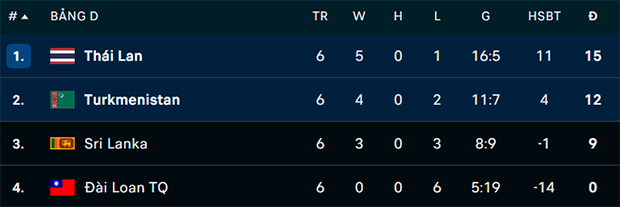 ![]() Đánh bại Turkmenistan, Thái Lan đã đoạt vé tham dự VCK Asian Cup 2027 Tối 31/3, Thái Lan đã bước vào trận hạ màn bảng D vòng loại Asian Cup 2027 với Turkmenistan. Trước trận đấu này, cả 2 đội đều giành 12 điểm sau 5 lượt trận. Tuy nhiên, Turkmenistan xếp trên nhờ hơn kết quả đối đầu (thắng 3-1 ở lượt đi). Điều đó đồng nghĩa Turkmenistan chỉ cần kết quả hòa ở màn tái đấu Thái Lan để giành vé dự VCK. Ngược lại, Thái Lan buộc phải thắng để vươn lên dẫn đầu bảng D. Điều thuận lợi là ở trận đấu quyết định, thầy trò Anthony Hudson được thi đấu trên sân nhà Rajamangala (Bangkok). Trước sự cổ vũ của khán giả nhà, Thái Lan đã đẩy cao đội hình tấn công ngay sau tiếng còi khai cuộc. Nỗ lực của đội bóng xứ sở chùa vàng đã được đền đáp với bàn mở tỉ số ở phút 14. Từ quả phạt góc bên cánh phải, Theerathon Bunmathan đã tạt bóng chính xác để hậu vệ Suphanan Bureerat đánh đầu hạ gục thủ thành Caryyev. Bàn mở tỉ số từ sớm đã mang lại sự thoải mái về tinh thần cho đội tuyển Thái Lan. Cộng với sự cổ vũ của khán giả nhà, đội bóng xứ sở chùa vàng đã làm chủ cuộc chơi. Họ chủ động cầm bóng, khiến Turkmenistan gặp nhiều khó khăn. Hiệp 1 khép lại với tỉ số 1-0 nghiêng về đại diện của Đông Nam Á. ![]() Thái Lan dẫn trước 1-0 sau 45 phút đầu tiên Rơi vào thế bị dẫn bàn, Turkmenistan chủ động đẩy cao đội hình khi bước vào hiệp 2. Ngược lại, Thái Lan chủ động đá chậm, chờ cơ hội để phản đòn. Đây có lẽ là lựa chọn sai lầm của thầy trò Anthony Hudson bởi họ đã đánh mất tuyến giữa, không thể kiểm soát trận đấu như hiệp 1. Kết quả, ở phút 60, Turkmenistan đã ghi bàn gỡ hòa 1-1 nhờ cú sút xa đẳng cấp của Taymur Charyyev. Bàn thua đáng tiếc này đã đẩy Thái Lan vào tình thế khó khăn. Họ buộc phải tấn công để lấy lại lợi thế trong cuộc đua giành vé dự VCK Asian Cup 2027. Trong khoảng 30 phút cuối trận, Thái Lan gây sức ép nghẹt thở, đẩy khung thành của Turkmenistan vào thế báo động đỏ. Những quân bài tấn công tốt nhất đã được HLV Anthony Hudson tung vào sân. Càng về cuối, trận đấu càng gay cấn khi Thái Lan vùng lên dữ dội. Nỗ lực không biết mệt mỏi của Thái Lan cuối cùng đã được đền đáp ở phút 89 khi trung vệ Manuel Tom Bihr đánh đầu ở cự li gần, ấn định chiến thắng 2-1 đầy kịch tính. Chung cuộc, Thái Lan giành chiến thắng với tỉ số 2-1. Điều đó đồng nghĩa thầy trò Anthony Hudson đã vượt qua Turkmenistan, vươn lên dẫn đầu bảng D với 15 điểm. Turkmenistan rơi xuống vị trí thứ 2 với 12 điểm. Với kết quả này, Thái Lan đã đoạt vé tham dự VCK Asian Cup 2027. ![]() Chiến thắng kịch tính của Thái Lan được định đoạt ở phút 89 Đây là kì Asian Cup thứ 3 liên tiếp Thái Lan góp mặt. Ở 2 giải đấu gần nhất, đội bóng xứ sở chùa vàng đều dừng bước ở vòng 1/8. Như vậy, Thái Lan đã trở thành đại diện thứ 4 của bóng đá Đông Nam Á đoạt vé tham dự VCK Asian Cup 2027, sau Indonesia, Singapore và Việt Nam. XẾP HẠNG CHUNG CUỘC BẢNG D VÒNG LOẠI ASIAN CUP 2027 ![]() |