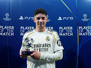 Tiền vệ Fede Valverde đã thiết lập nhiều dấu mốc ấn tượng khi tỏa sáng với 1 cú hat-trick trong trận Real Madrid thắng Man City ở lượt đi vòng 1/8 Champions League. |