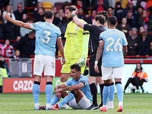 Tiền vệ Rodri của Man City có vẻ đã dính chấn thương nghiêm trọng trong trận thắng Brentford 1-0 vào đêm qua. |