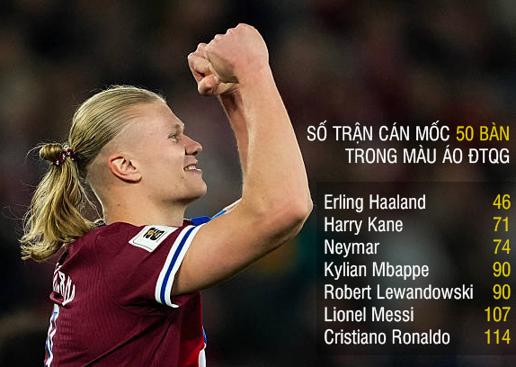 Cán mốc 50 bàn ở ĐTQG, Haaland bỏ xa Messi và CR7 |