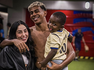 Lamine Yamal đã chia vui với bạn gái và em trai trong phòng thay đồ sau khi lập dấu mốc ấn tượng ở trận Barcelona giành chiến thắng trước Olympiacos tại Champions League. |