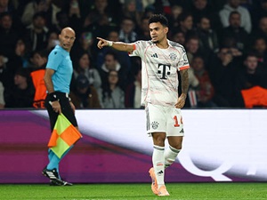 Luis Diaz đã đóng 2 vai ở trận gặp PSG, vừa là người hùng với cú đúp bàn thắng, giúp Bayern giành chiến thắng 2-1, vừa trở thành tội đồ với tấm thẻ đỏ trực tiếp, khiến đội nhà phải chơi thiếu người trong cả hiệp 2. |